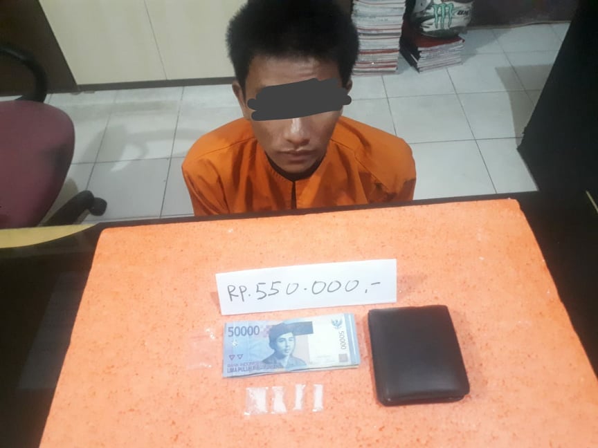 Kapolres Indragiri Hilir AKBP Christian Rony, S.I.K., M.H., melalui Kasat ResNarkoba AKP Bachtiar, S.H., membenarkan penangkapan pria pengangguran tersebut. “Kami menyita empat paket sabu-sabu siap edar dan uang tunai sejumlah lima ratus lima puluh ribu rupiah”, tukas Perwira Polisi berpangkat balok tiga itu.