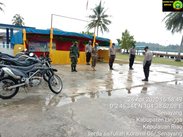 KARIMUNTODAY.COM, LINGGA – Hari pertama menunaikan ibadah puasa Koramil dan Polsek Senayang lakukan apel bersama Jum,at (24/04/2020) di Kelurahan Senayang juga di Ikuti satpol PP,dalam rangka untuk pengamanan arus mudik serta pemantauan baik yang datang maupun yang keluar dari Pelabuhan.