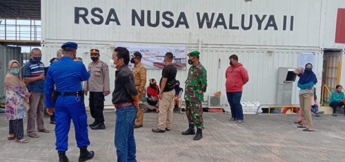 KARIMUNTODAY.COM, KUNDUR – TNI dan Polri bersama kepala UPT Puskesmas (Kapus) Tanjungbatu mengunjungi Rumah Sakit Apung (RSA) Nusa Waluya II yang sudah berlabuh di Kecamatan Kundur Kabupaten Karimun sejak Minggu (22/6/2021).Keberadaan Rumah Sakit Apung (RSA) Nusa Waluya II diharapkan dapat mendukung pelayanan kesehatan masyarakat Kabupaten Karimun khususunya pulau Kundur.