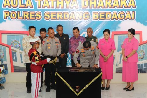 KARIMUNTODAY.COM, SERGAI – Kapolda Sumatera Utara (Sumut) Irjen Pol Whisnu Hermawan Februanto S.I.K., M.H., beserta ibu Ketua PD Bhayangkari Sumatera Utara Ny. Mona Whisnu melaksanakan Kunjungan kerja (Kunker) ke Polres Serdangbedagai (Sergai) dalam rangka Peresmian Gedung Aula Tathya Dharaka Polres Sergai serta Peresmian Dapur SPPG Polres Sergai, Kamis (13/11/2025) Pukul 09.45 Wib s.d selesai, di Mako Polres Sergai, Jalan Negara Desa Firdaus Kecamatan Seirampah Kabupaten Sergai – Sumut.