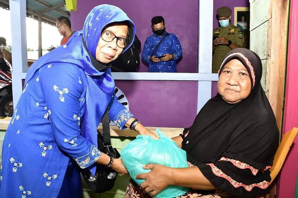 Ketua Tim Penggerak Pemberdayaan dan Kesejahteraan Keluarga (TP PKK) Kabupaten Natuna, Hj. Nurhayati Hamid Rizal, membagikan masker secara gratis kepada masyarakat di Kecamatan Serasan dan Kecamatan Subi.