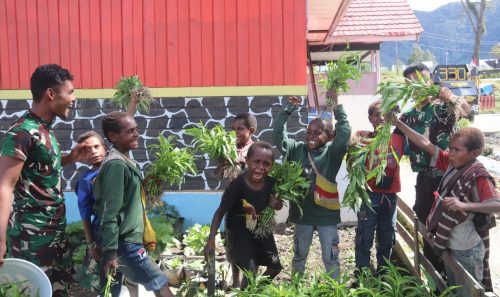 KARIMUNTODAY.COM, INTAN JAYA – Sepulang dari sekolah nampak sekelompok bocah Papua beradu lari menuju ke Pos Kotis Satgas 330 yang ada di kampung Mamba, Kab. Intan Jaya, Papua Tengah. Siang itu, para Ksatria Tri Dharma mengajak anak-anak untuk memanen kangkung yang ada di Kebun Pos Kotis Mamba, pada Selasa (16/1/24).