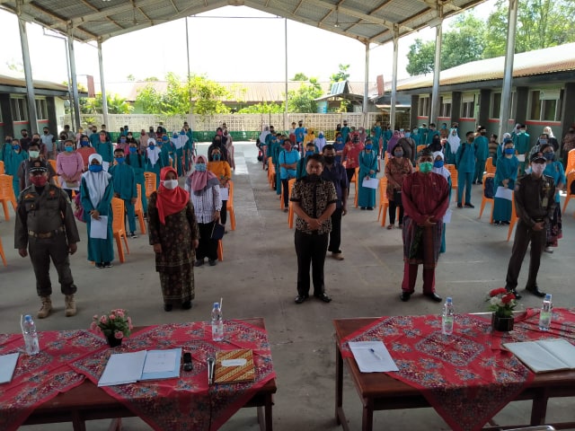 KARIMUNTODAY.COM, SIAK – Tiga pilar Kecamatan Minas yang terdiri dari Camat Minas H Hendra Adi Nugraha SSTP MSi, Kapolsek Minas Kompol Birma Naipospos, Danramil Minas Kapten Inf Sahman Sinaga beserta Satpol PP, dalam masa new normal ini mereka gencar mensosialisasikan penerapan protokol kesehatan (Prokes) khususnya di tempat-tempat ibadah bahkan tempat pendidikan. Seperti hari ini Jumat, (19/06/2020) giat itu tampak dilaksanakan di SMP Negeri 1 Minas, Kabupaten Siak, Riau, sekira pukul 10:19 WIB pagi tadi.