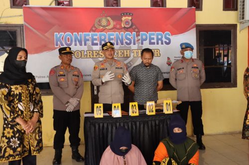 “Empat tersangka ini memiliki peran masing-masing dan yang dihadirkan dalam konferensi pers kali ini dua orang, sedangkan dua tersangka yang lain berada di LP Idi karena keduanya statusnya narapidana,” kata Kapolres Aceh Timur AKBP Andy Rahmansyah, S.I.K. saat memimpin konferensi pers di halaman Kantor Satreskrim Polres Aceh Timur, Jum’at, (19/08/2022) sore.