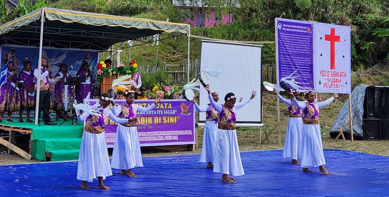 Para Ksatria Tri Dharma beragama Kristen yang dipimpin oleh Lettu Inf Ronal Reagen Simanjuntak berbaur bersama masyarakat Intan Jaya mengikuti rangkaian kegiatan ibadah KKR yang dibuka secara resmi oleh Pj. Bupati Intan Jaya, Apolos Bagau, ST.