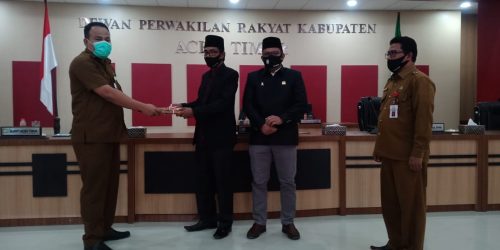 KARIMUNTODAY.COM, ACEH TIMUR – T Reza Rizki, SH, M.Si Asisten Administrasi Umum, Setdakab Aceh Timur mewakili Bupati Aceh Timur H. Hasballah Bin H.M. Thaib, SH menyerahkan Rancangan Perubahan Anggaran Pendapatan dan Belanja Kabupaten Aceh Timur tahun anggaran 2020.