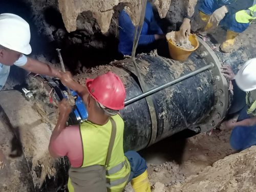 Pekerjaan penyambungan pipa 800 mm yang putus akibat adanya pergeseran tanah, pada Senin (27/11/2023) lalu, telah selesai dikerjakan.