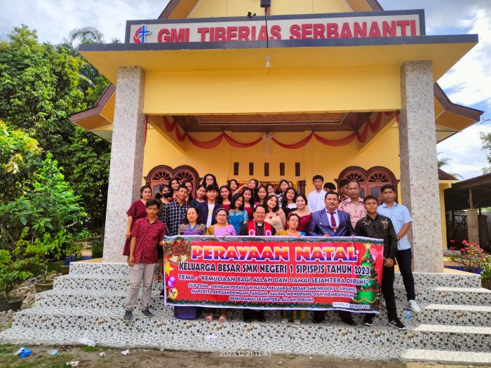 KARIMUNTODAY.COM, SERGAI – Perayaan Natal Keluarga Besar SMK Negeri 1 Sipispis yang digelar pada Kamis (21/12/2023), sekira pukul 10.00 WIB, di Gedung Gereja GMI TIBERIAS SERBANANTI, di Desa Serbananti Kecamatan Sipispis Kabupaten Serdang Bedagai (Sergai) – Sumut, berjalan Sukacita dan sukses.