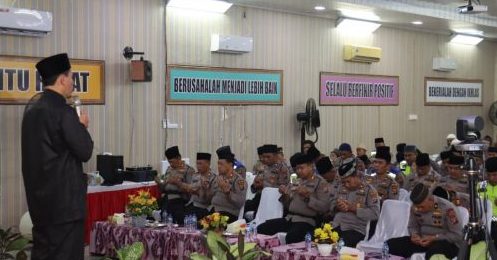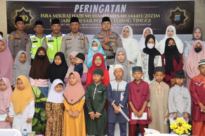 KARIMUNTODAY.COM, TEBING TINGGI – Peringatan Israk Mikraj Nabi Muhammad SAW 1444 H/Tahun 2023 Keluarga Besar Polres Tebing Tinggi berlangsung dengan mengusung Thema; “Semangat Israk Mikraj Menguatkan Keimanan, Ketaqwaan dan Solidaritas Guna Mewujudkan Polri Yang Presisi”.