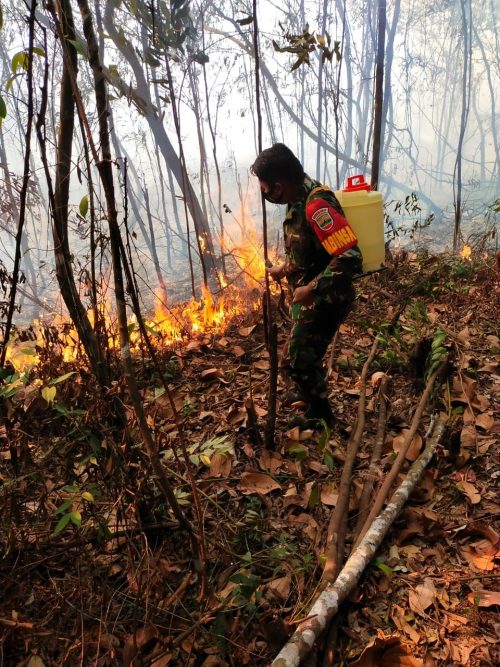 Api mulai menghanguskan lahan milik salah seorang karyawan PT Timah di Desa Kundur, Jum’at (15/3/2021) sekira jam 14.00 Wib. Beruntung Personel TNI dari jajaran Koramil 03/Kundur Kodim 0317/TBK cepat mengambil langkah dan bekerja sama dengan masyarakat Desa Kundur Kecamatan Kundur Barat untuk memadamkan api sehingga kebakaran tidak meluas.