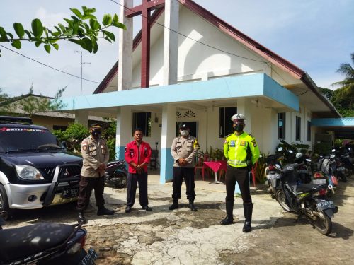 KARIMUNTODAY.COM, BINTAN – Personil Polres Bintan lakukan pengamanan disejumlah Gereja yang melaksanakan Ibadah memperingangti kenaikan Isa Almasi pada hari Kamis (26/5/2022).