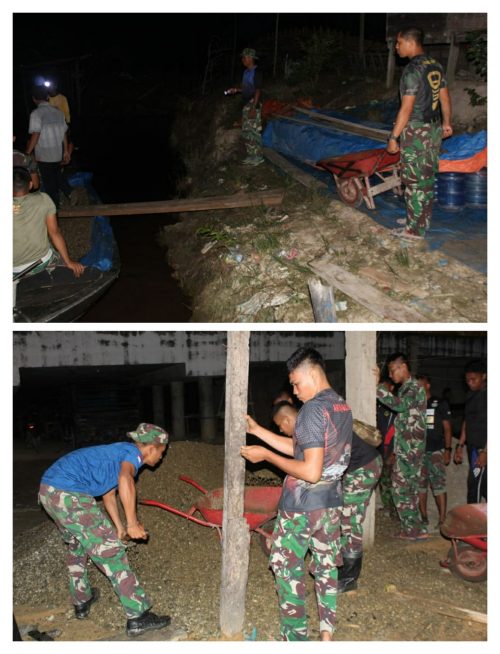 Salah satu personil satgas TMMD, Peltu Rudiono mengatakan akses masuknya material melalui sungai dan menunggu pasangnya Air, semangat yang luar biasa dalam pekerjaan ini jelas terlihat dari personil dan Masyarakat.