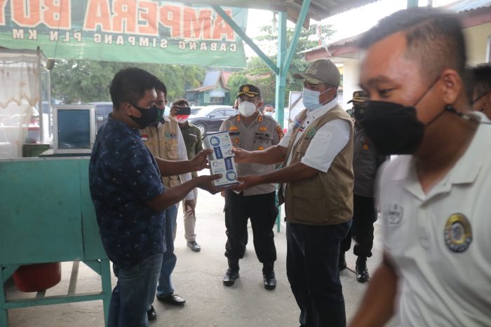 KARIMUNTODAY.COM, SIAK – Senin (16/08/2021). Bupati Siak Alfedri, bersama Kapolres Siak AKBP Gunar Rahardiyanto melaksanakan kegiatan pembagian masker dan sosialisasi Pemberlakuan Pembatasan Kegiatan Masyarat (PPKM) level 4 untuk Kabupaten Siak. Kegiatan tersebut dilaksanakan di Aula Kantor Lurah Minas Jaya dan Aula Kantor Camat Kandis, Sabtu (14/08/2021) kemarin.