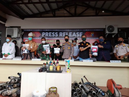 miras kemasan botol sebanyak 348 buah dan kemasan kaleng sebanyak 12 buah. Hari ini juga kami musnahkan,” kata Kapolres Inhil.