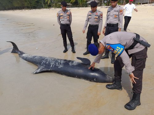 “Barangkali, ikan paus tersebut lagi mencari makanan ke pinggir, ombak pasang terdorong ke bibir pantai, dalam keadaan hidup lalu mati karena dehidrasi dan kelelahan,” tutup Kasat Polairud Polres Lingga AKP Ardian,S.H.(*)