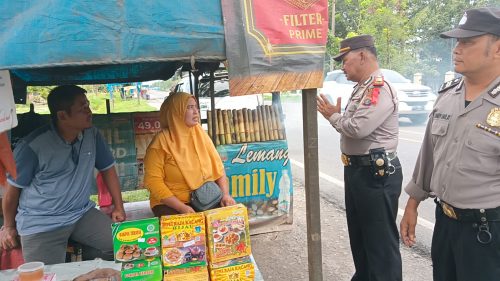 KARIMUNTODAY.COM, TEBINGTINGGI – Kasat Binmas Polres Tebingtinggi AKP BSM Tarigan selaku Kasub Satgas Binmas dalam Operasi Lilin Toba 2023, dalam rangka Hari Natal 2023 dan Tahun Baru 2024 memberikan himbauan kepada para pedagang lemang disepanjang Jalan Yos Sudarso, Kota Tebingtinggi, Kamis (28/12/2023).