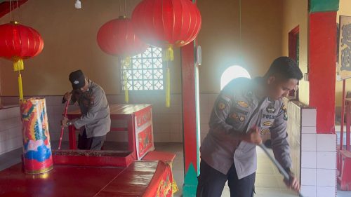 Kegiatan ini dipimpin langsung oleh Kapolsek Daik Lingga, AKP Mayson Syafri, bersama 10 personel Polsek. Turut hadir dalam kegiatan ini Ketua Klenteng Cetiya Loka Santi dan tokoh masyarakat setempat yang bahu-membahu membersihkan area sekitar tempat ibadah.