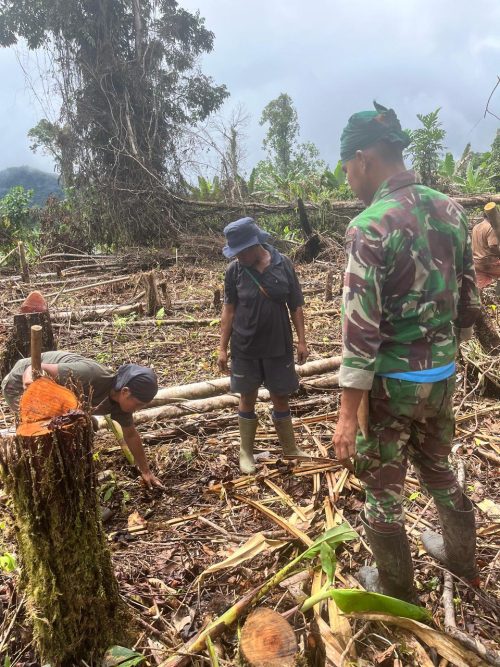 KARIMUNTODAY.COM, PEGUNUNGAN BINTANG – Personel Pos Selal Satgas Pamtas RI–PNG Yonif 751/Vira Jaya Sakti (VJS) melaksanakan penanaman pohon pisang bersama warga Kampung Beringin pada (Selasa,30/9/2025). Kegiatan gotong royong ini melibatkan tokoh masyarakat setempat, Bapak Naum, serta Kepala Kampung Beringin, Bapak Ignasius Jamki.