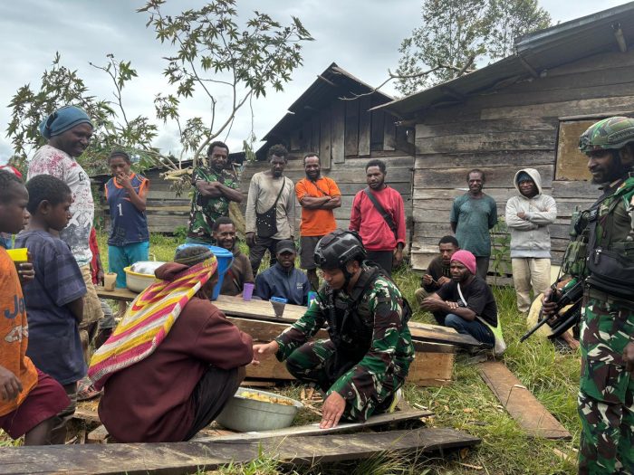 KARIMUNTODAY.COM, PEGUNUNGAN BINTANG – Pos Serambakon Satgas Yonif 751/VJS menunjukkan kepedulian terhadap masyarakat Kampung Seramkatop dengan hadir di tengah keluarga yang berduka, memberikan dukungan moril dan membantu kebutuhan dasar di rumah duka. Kehadiran prajurit dimaksudkan sebagai pelipur lara, memperkuat kebersamaan TNI–rakyat, serta memastikan prosesi kedukaan berjalan tertib dan lancar (Selasa,14/10/2025)