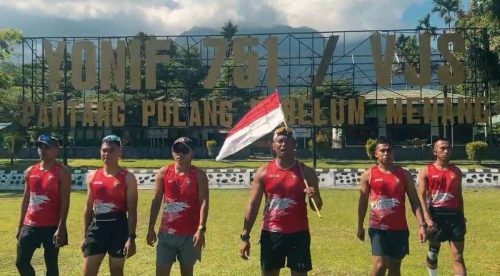 Prajurit Yonif 751/VJS Kibarkan Semangat Kemerdekaan, Lari 80 KM Keliling Danau Sentani Bawa Merah Putih