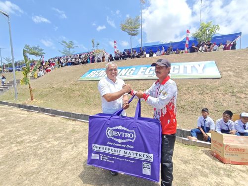 KARIMUNTODAY.COM, BATAM— Suasana meriah menyelimuti kawasan Eks Rumah Sakit Khusus Infekksi (RSKI) Pulau Galang saat PT Makmur Elok Graha (PT MEG) dan Artha Graha Grup bersama warga Rempang-Galang menggelar pesta rakyat untuk memperingati Hari Ulang Tahun ke-80 Republik Indonesia di lapangan Eks RSKI Pulau Galang, Batam, Minggu (17/8/2025).