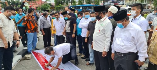 Aksi juga diwarnai dengan penandatanganan pernyataan sikap yang dilakukan oleh perwakilan ormas yang hadir.(*/rls)