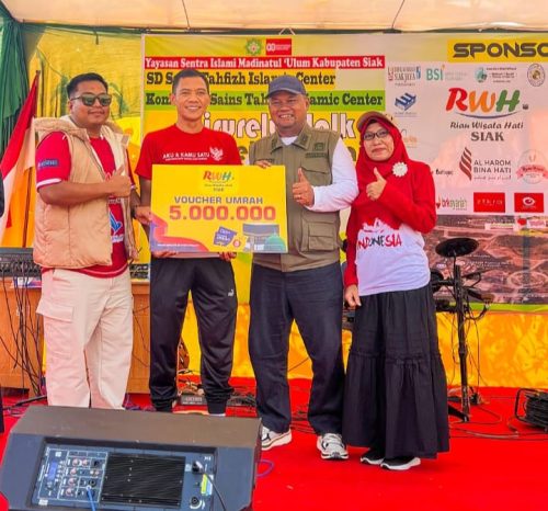 Pimpinan RWH Siak Fahmi Amrizal SH menyebutkan pihaknya sangat mendukung kegiatan ini. Wujud dukungan dengan membagikan voucher umroh senilai Rp5 juta. “Voucher umroh bisa digunakan saat mendaftar dan langsung bisa mengurangi biaya umrohnyo. Paket terbaru umroh 12 hari RWH Siak Rp23 juta (tanpa perlengkapan), kalau pakai voucher Rp5 juta cukup bayar 18 juta. Sudah free ziarah ke Taif, nasi mandi dan albaik. Bagi yang berminat menunaikan haji dan umroh bisa langsung datang ke Kantor RWH Siak Jalan Raja Kecik di depan rumah Dinas Bupati Siak,” jelas Fahmi.(*)