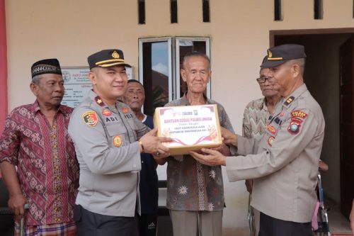 Wakapolres Lingga Kompol Adi Sumardi, S.Kom didampingi PJU Polres Lingga memberikan bantuan sosial ke kediaman Warakauri, Panti Jompo, Panti Asuhan dan Veteran, pada hari Selasa (08/08/2023).