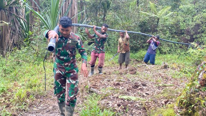 KARIMUNTODAY.COM, PEGUNUNGAN BINTANG – Di bawah naungan Koops Swasembada, Satgas Pamtas Statis Yonif 751/Vira Jaya Sakti (VJS) melaksanakan program TNI Manunggal Air di Kampung Bulangkop Distrik Okaom. Inisiatif ini ditujukan untuk mencegah kekeringan saat musim kemarau sekaligus memastikan pasokan air bersih yang andal bagi masyarakat di sekitar pos perbatasan (Selasa, 25/11/2025).
