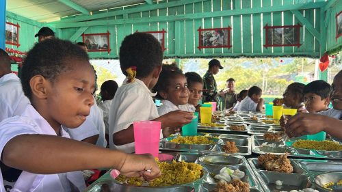 KARIMUNTODAY.COM, PEGUNUNGAN BINTANG – Pos Komando Taktis (Kotis) Satgas Pamtas RI–PNG Yonif 751/Vira Jaya Sakti (VJS) melaksanakan kegiatan sosial dengan memberikan makan kepada anak-anak yang baru pulang sekolah di Rumah Makan Swasembada. Kegiatan ini bertujuan menambah semangat belajar para siswa sekaligus menghadirkan suasana kebersamaan yang hangat antara prajurit TNI dan generasi muda di wilayah perbatasan. (Senin,19/1/2026).