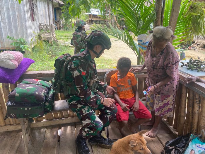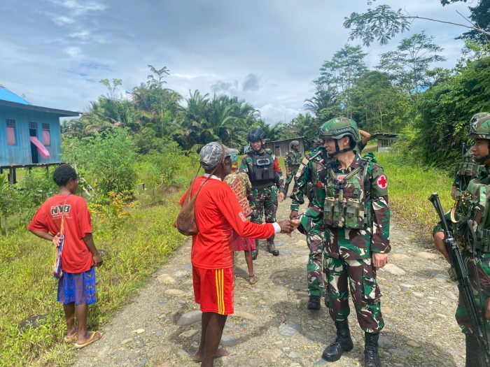 TNI Anjangsana dan Layanan Kesehatan di Kampung Krumkin, Wujud Kepedulian Satgas Yonif 751/VJS kepada Warga Perbatasan