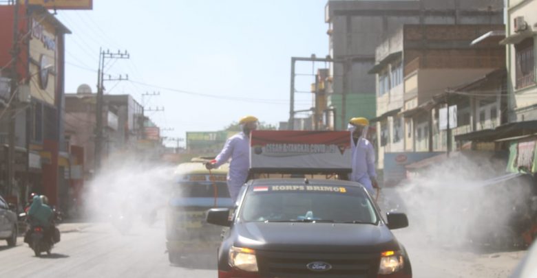 Putus Penyebaran Covid-19, Polres Sergai Gelar Penyemprotan Desinfektan Massal