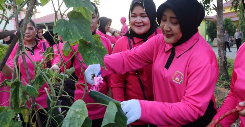 Ketua Bhayangkari Cabang Bintan Panen Setengah Ton Mentimun