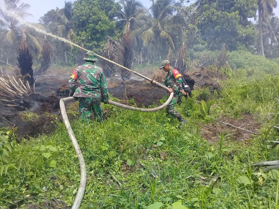Danramil 11/Pulau Burung, Kapten Inf Ujang. Z terjun langsung memimpin pemadaman api yang terjadi di ladang yang dijaga oleh Bapak Sapto.