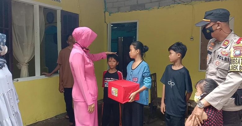 Jelang Idulfitri! Kapolsek Buru Didampingi Ketua Ranting Bhayangkari Sambangi Anak Yatim 5 bersaudara
