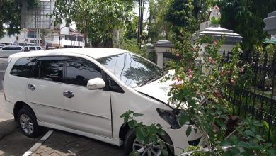 Akibat Ban Mobil Pecah, Seorang Pengemudi Tabrak Dua mobil, dan Pagar Gedung DPRD Grobogan