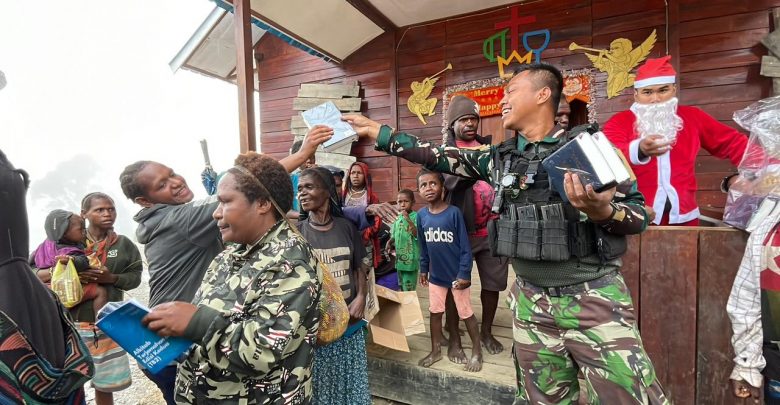 Jelang Ibadah Malam Natal di Intan Jaya, Satgas 330 Bagikan Bantuan Alkitab Dari Pangkostrad
