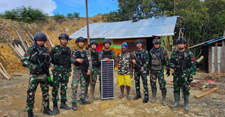 Satgas 330 Tri Dharma Hadirkan Pelita, Lingkungan Rumah Yance Sani Tak Lagi Gelap Gulita