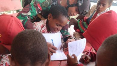 Satgas 330 Tri Dharma Hadirkan Pelita, Aprianus Tersenyum Bahagia