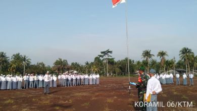 Babinsa Desa Beringin Mulya Anggota Koramil Kateman Irup di SMAN 1 Teluk Belengkong