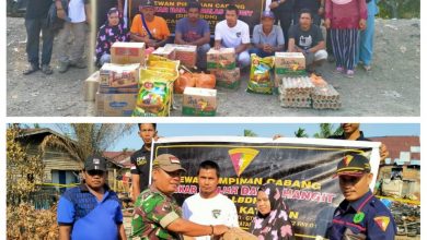 Babinsa Desa Air Tawar Kateman Beserta Pemdes dan Ormas Kunjungi Korban kebakaran