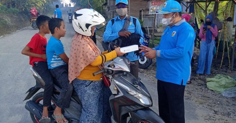 Ketua Komisi I DPRD Pelalawan dan KNPI Kerumutan Bagikan 3000 Masker
