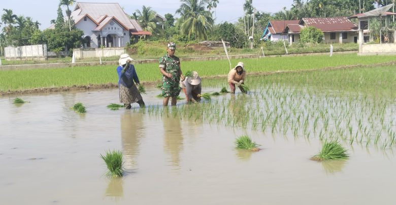 Penuh Semangat, Babinsa Turun ke Sawah Bersama Petani