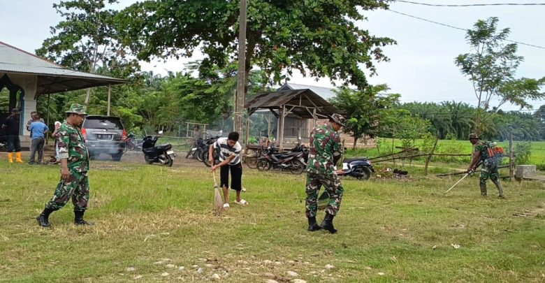 Karya Bakti HUT TNI ke-80, Koramil 20/Cot Girek dan Warga Brd Asan Kompak Bersihkan Masjid Al-Ikhlas