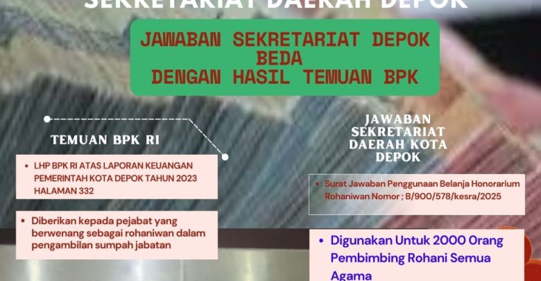 Ada Apa, Pemkot Depok Tak Berani Terbuka ? Soal Honorarium Rohaniwan sebesar 9,6 Miliar Pada Sekretariat Daerah Depok Jawaban Berbeda dengan Temuan BPK RI.