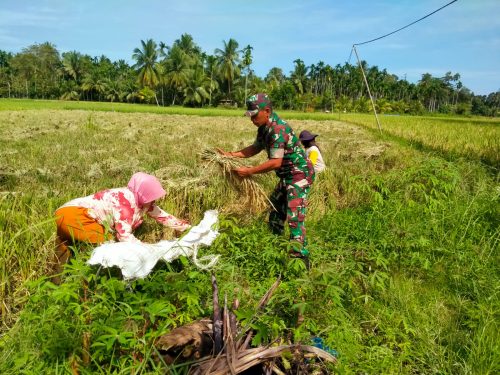 Babinsa Dampingi Petani Panen Padi di Paya Bakong