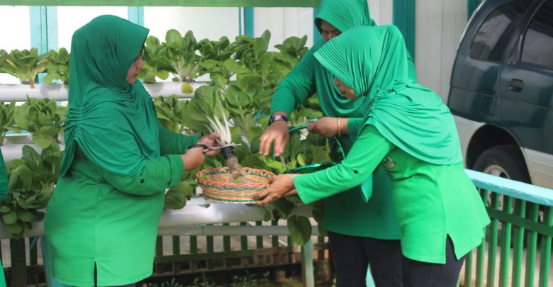 Ketua Persit KCK Cabang XXLII Dim 0318/ Natuna Panen Sayuran Sawi bersama Para Pengurus