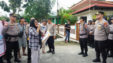 Aksi Humanis Polwan Polres Karimun Saat Aksi Unjuk Rasa Di Kantor Pengadilan Negeri Karimun