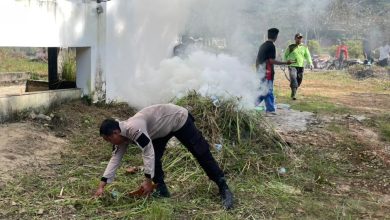 Polsek Daik Lingga Gelar Gotong Royong Bersama Sambut Kedatangan Menko kumham RI