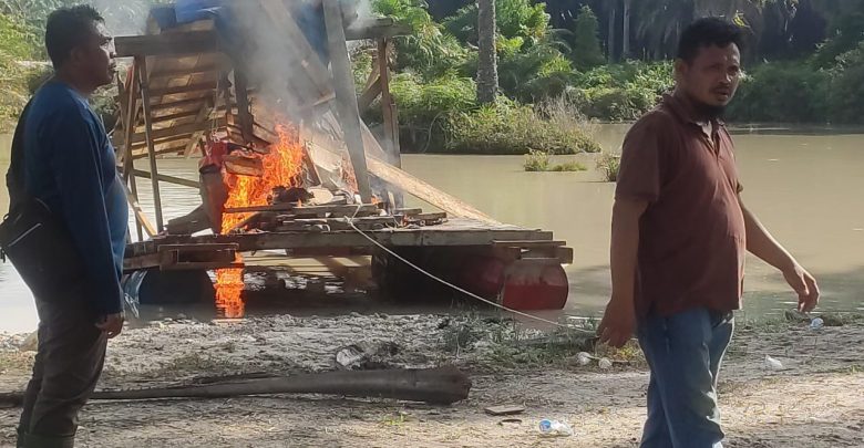 Kapolsek Kuantan Hilir Pimpin Lansung Penertiban PETI di Desa Kasang Limau Sundai